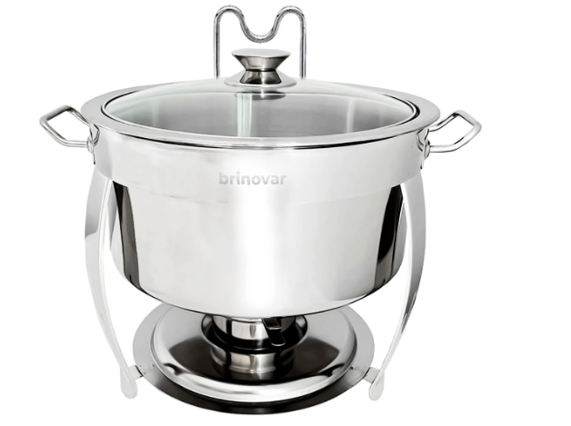 Sugestão de uso: Rechaud ideal para ser utilizado em festas em geral, mantendo a comida aquecida e no ponto perfeito de ser servida. Esse modelo de rechaud é usado para servir variações de arroz e feijão, saladas, massas, carnes e entre outras opções.